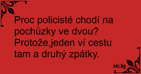 Proc policisté chodí na pochůzky ve dvou?Protože,jeden ví cestu tam a druhý zpátky.