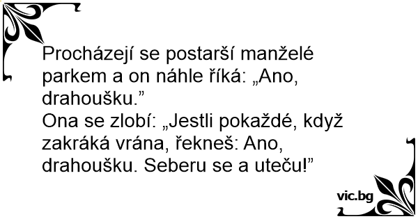 Procházejí se postarší manželé parkem a on náhle říká: „Ano, drahoušku.”