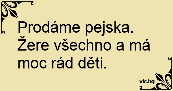 Prodáme pejska. Žere všechno a má moc rád děti.
