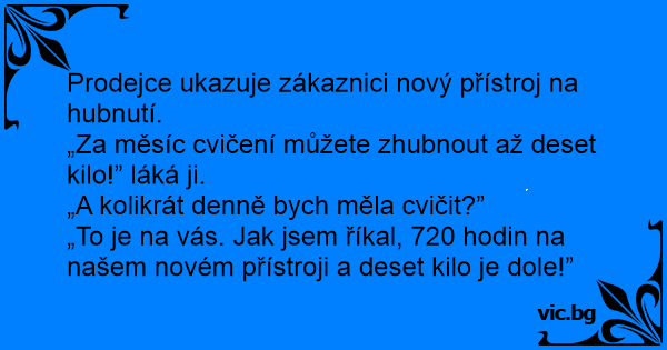„To je na vás. Jak jsem říkal, 720 hodin na našem novém přístroji a deset kilo je dole!”