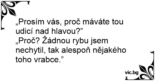 „Prosím vás, proč máváte tou udicí nаd hlavou?”
