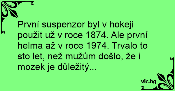 První suspenzor byl v hokeji použit už v roce 1874. Ale první helma až v roce 1974. Trvalo to sto let, než mužům došlo, že i mozek je důležitý...