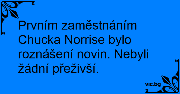 Prvním zaměstnáním Chucka Norrise bylo roznášení novin. Nebyli žádní přeživší.