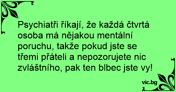Psychiatři říkají, že každá čtvrtá osoba má nějakou mentální poruchu, takže pokud jste se třemi přáteli a nepozorujete nic zvláštního, pak ten blbec jste vy!