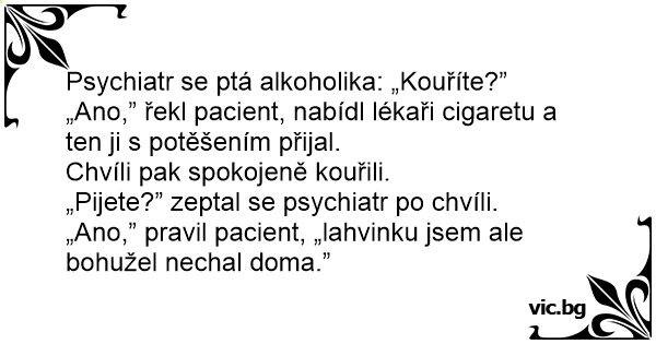 „Ano,” pravil pacient, „lahvinku jsem ale bohužel nechal doma.”
