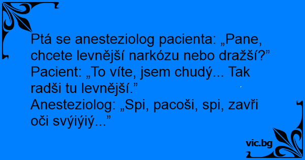 Ptá se anesteziolog pacienta: „Pane, chcete levnější narkózu nebo dražší?”