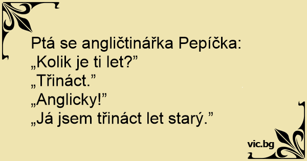 Ptá se angličtinářka Pepíčka: „Kolik je ti let?”