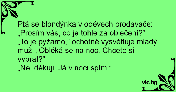 Ptá se blondýnka v oděvech prodavače: „Prosím vás, co je tohle za oblečení?”