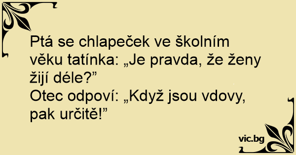 Ptá se chlapeček ve školním věku tatínka: „Je pravda, že ženy žijí déle?”