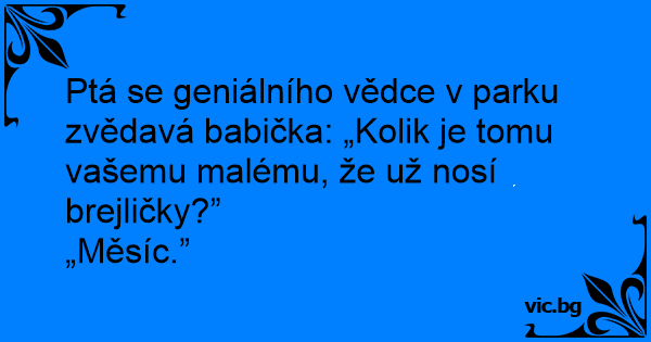 Ptá se geniálního vědce v parku zvědavá babička: „Kolik je tomu vašemu malému, že už nosí brejličky?”