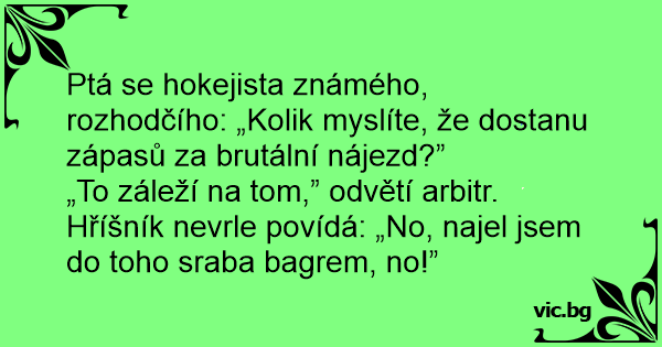 Ptá se hokejista známého, rozhodčího: „Kolik myslíte, že dostanu zápasů za brutální nájezd?”