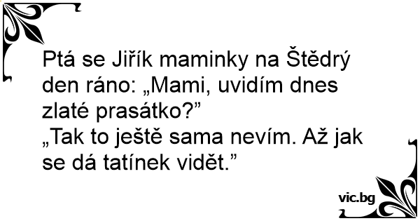 Ptá se Jiřík maminky na Štědrý den ráno: „Mami, uvidím dnes zlaté prasátko?”