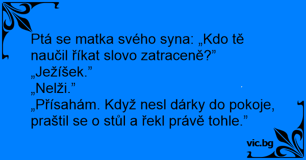 Ptá se matka svého syna: „Kdo tě naučil říkat slovo zatraceně?”