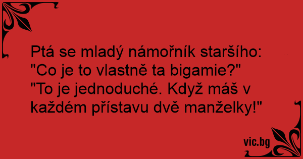 "To je jednoduché. Když máš v každém přístavu dvě manželky!"