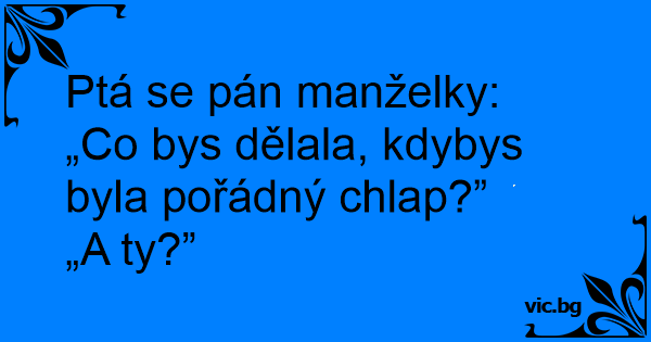 Ptá se pán manželky: „Co bys dělala, kdybys byla pořádný chlap?”