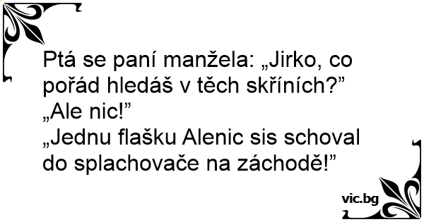 Ptá se paní manžela: „Jirko, co pořád hledáš v těch skříních?”