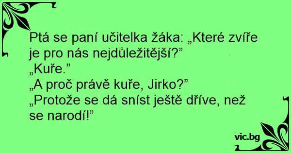 Ptá se paní učitelka žáka: „Které zvíře je pro nás nejdůležitější?”