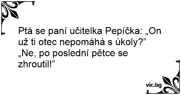 Ptá se paní učitelka Pepíčka: „On už ti otec nepomáhá s úkoly?”