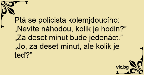 Ptá se policista kolemjdoucího: „Nevíte náhodou, kolik je hodin?”