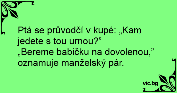 Ptá se průvodčí v kupé: „Kam jedete s tou urnou?”