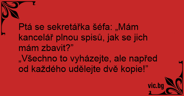 Ptá se sekretářka šéfa: „Mám kancelář plnou spisů, jak se jich mám zbavit?”