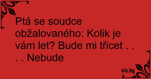 Ptá se soudce obžalovaného: Kolik je vám let? Bude mi třicet . . . . Nebude