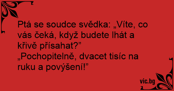Ptá se soudce svědka: „Víte, co vás čeká, když budete lhát a křivě přísahat?”
