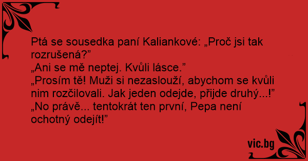 Ptá se sousedka paní Kaliankové: „Proč jsi tak rozrušená?”