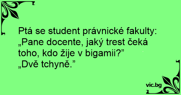Ptá se student právnické fakulty: „Pane docente, jaký trest čeká toho, kdo žije v bigamii?”