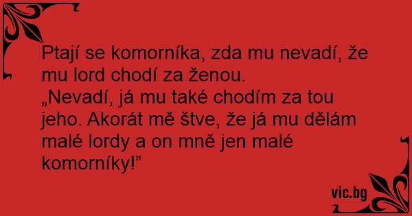 „Nevadí, já mu také chodím za tou jeho. Akorát mě štve, že já mu dělám malé lordy a on mně jen malé komorníky!”