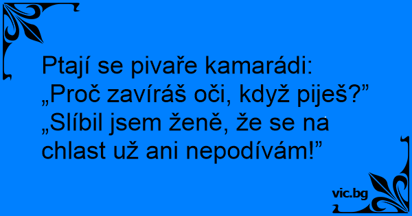 Ptají se pivaře kamarádi: „Proč zavíráš oči, když piješ?”