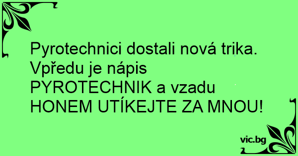 Pyrotechnici dostali nová trika. Vpředu je nápis PYROTECHNIK a vzadu HONEM UTÍKEJTE ZA MNOU!