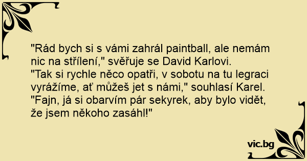 "Rád bych si s vámi zahrál paintball, ale nemám nic na střílení," svěřuje se David Karlovi.