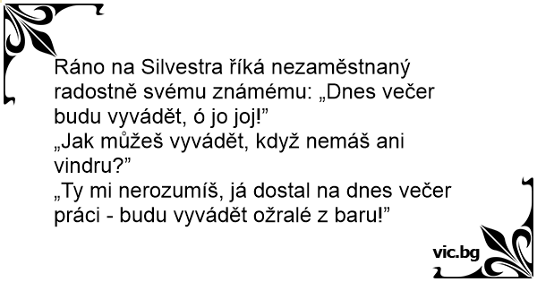 Ráno na Silvestra říká nezaměstnaný radostně svému známému: „Dnes večer budu vyvádět, ó jo joj!”