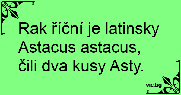Rak říční je latinsky Astacus astacus, čili dva kusy Asty.