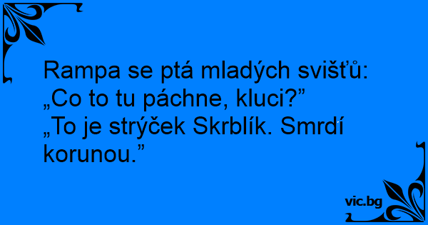 „To je strýček Skrblík. Smrdí korunou.”