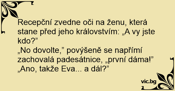 „No dovolte,” povýšeně se napřímí zachovalá padesátnice, „první dáma!”