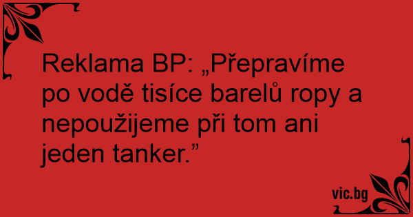 Reklama BP: „Přepravíme po vodě tisíce barelů ropy a nepoužijeme při tom ani jeden tanker.”