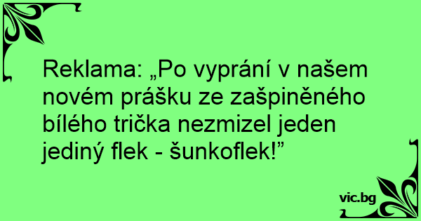 Reklama: „Po vyprání v našem novém prášku ze zašpiněného bílého trička nezmizel jeden jediný flek - šunkoflek!”