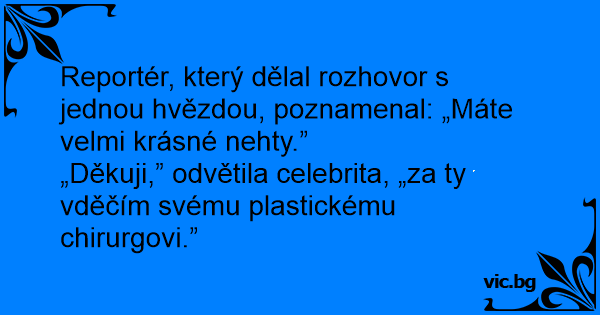 „Děkuji,” odvětila celebrita, „za ty vděčím svému plastickému chirurgovi.”
