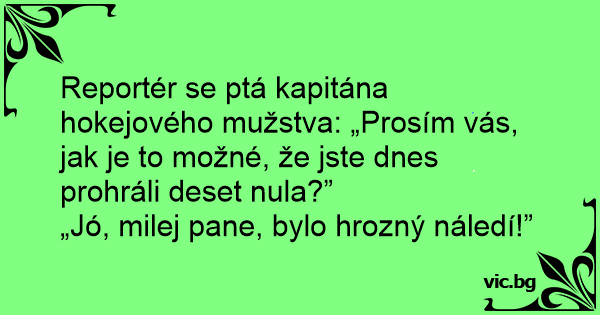 Reportér se ptá kapitána hokejového mužstva: „Prosím vás, jak je to možné, že jste dnes prohráli deset nula?”