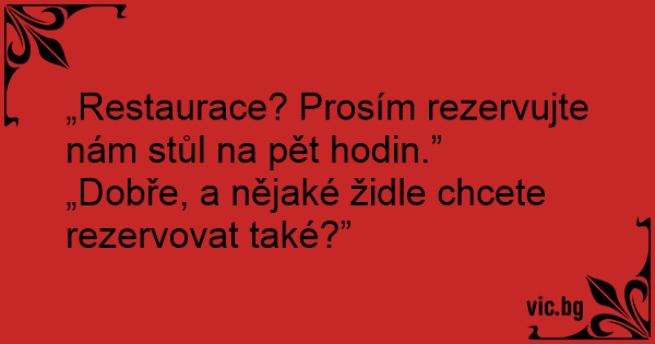 „Restaurace? Prosím rezervujte nám stůl na pět hodin.”