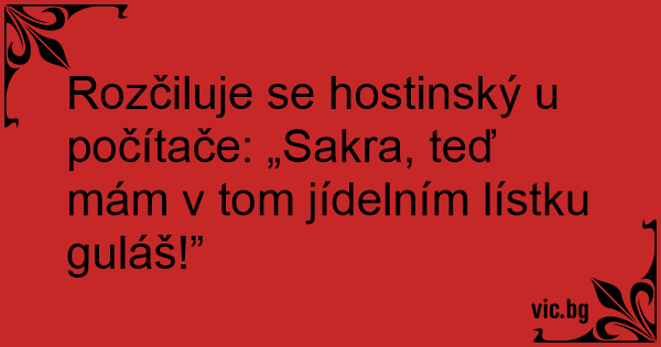 Rozčiluje se hostinský u počítače: „Sakra, teď mám v tom jídelním lístku guláš!”