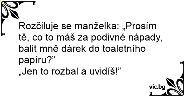 Rozčiluje se manželka: „Prosím tě, co to máš za podivné nápady, balit mně dárek do toaletního papíru?”