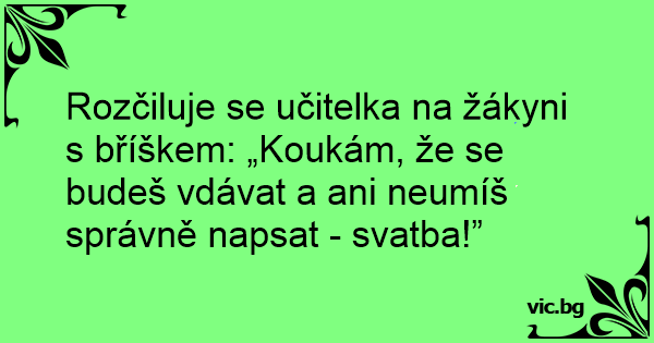 Rozčiluje se učitelka na žákyni s bříškem: „Koukám, že se budeš vdávat a ani neumíš správně napsat - svatba!”