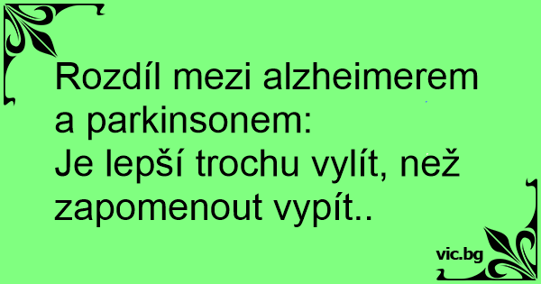 - Melyik a jobb, az Alzheimer vagy a Parkinson kór? - Az Alzheimer, mert jobb elfelejteni fizetni, mint kilötyögtetni a sört.