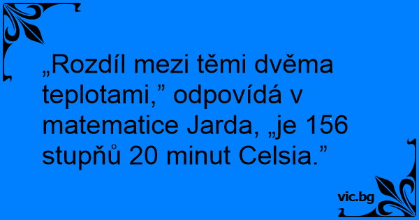 „Rozdíl mezi těmi dvěma teplotami,” odpovídá v matematice Jarda, „je 156 stupňů 20 minut Celsia.”