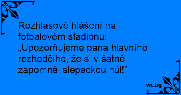 Rozhlasové hlášení na fotbalovém stadionu: „Upozorňujeme pana hlavního rozhodčího, že si v šatně zapomněl slepeckou hůl!”
