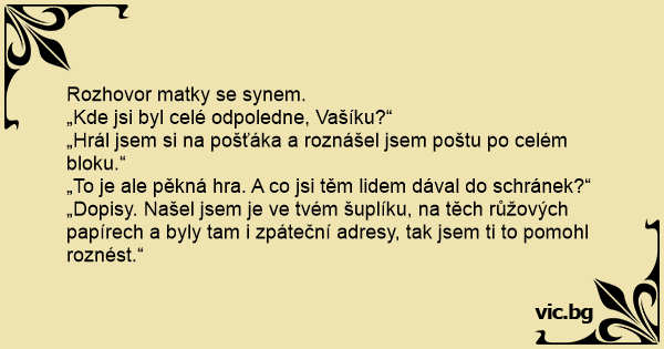 „To je ale pěkná hra. A co jsi těm lidem dával do schránek?“