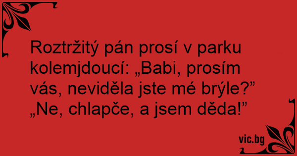 Roztržitý pán prosí v parku kolemjdoucí: „Babi, prosím vás, neviděla jste mé brýle?”